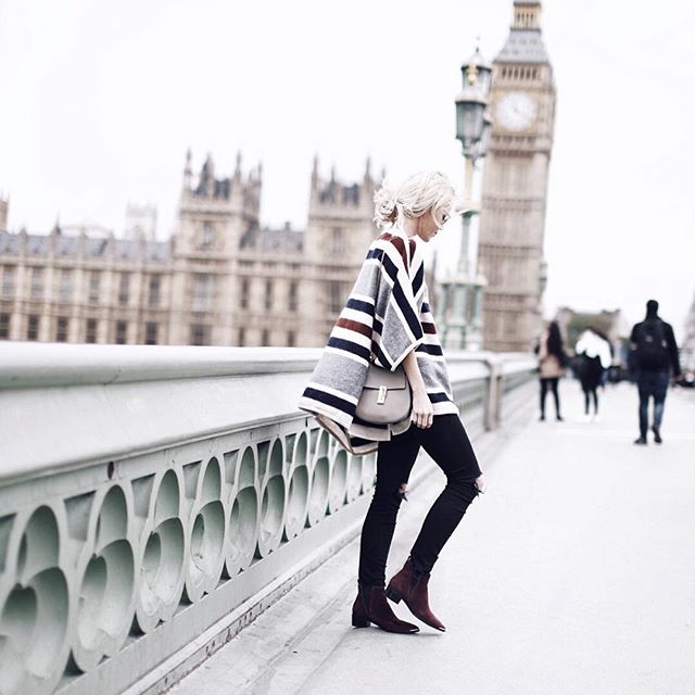I saw this poncho on an Instagram post from @happilygrey. I just love it for some reason. Maybe its Big Ben in the background, or just the great colors of stripes. But it just looks so pretty to me. Poncho from Anne Taylor.